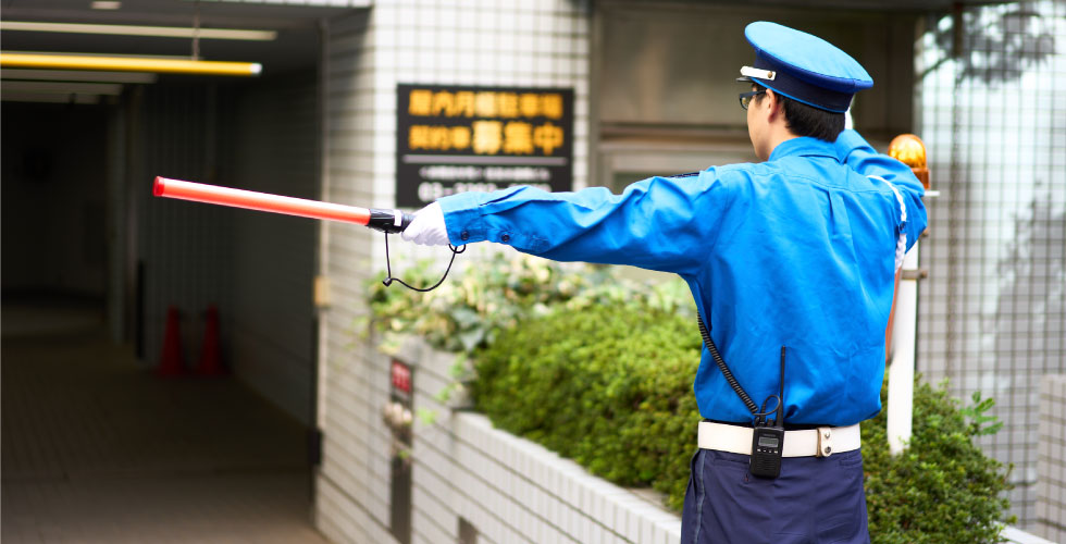 大型商業施設の駐車場内でお客様が安心してご利用できるよう、スムーズな車両誘導をお願いいたします。