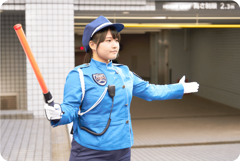 大型商業施設の駐車場内でお客様が安心してご利用できるよう、スムーズな車両誘導をお願いいたします。