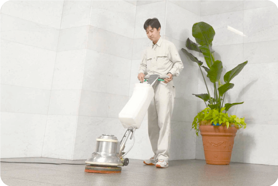 オフィスビルや商業施設の清掃を行っています。主に定年後のセカンドキャリアとしてシニア層の方が活躍しており、家庭やプライベートとも両立しやすく、安定収入を得られます。また、朝と夜に短時間業務があり、Wワークされる方にも最適です。勤務時間などもご相談ください。